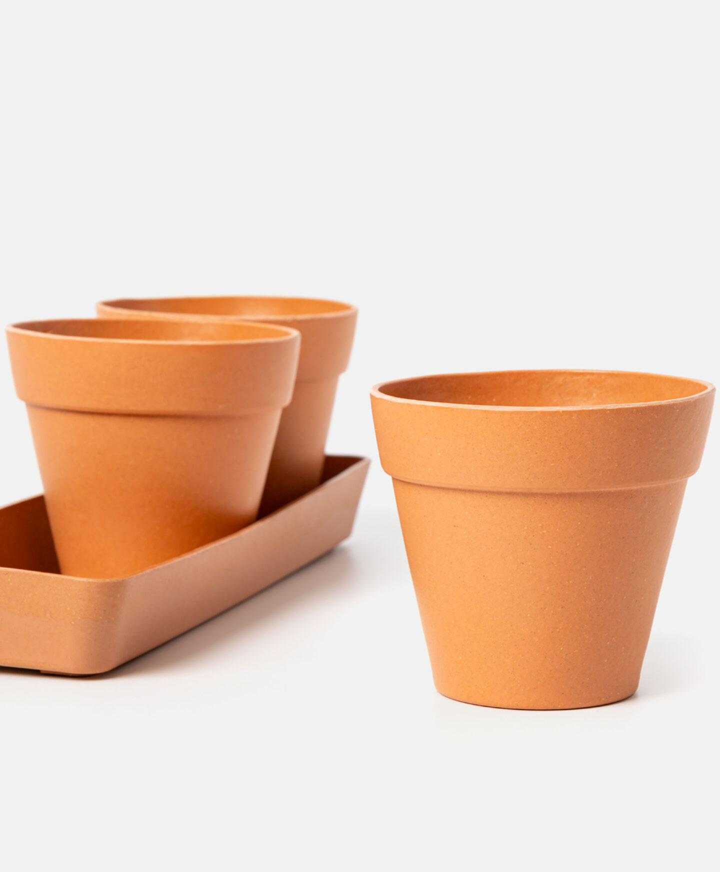Sada květináčů na bylinky 3 ks s podmiskou vám umožní pěstovat čerstvé bylinky doma nebo na balkoně. Souprava je odolná, lehká a snadno se čistí. Společná podmiska stabilizuje květináče, chrání jejich povrch před vlhkostí a vytváří úhlednou a kompaktní kompozici. Květináče mají na dně drenážní otvory, které zabezpečují odtok vody a chrání kořeny bylinek před promočením. Souprava je ideální pro umístění na kuchyňský parapet, stůl nebo poličku, což nabízí snadný přístup k čerstvým bylinám během vaření.