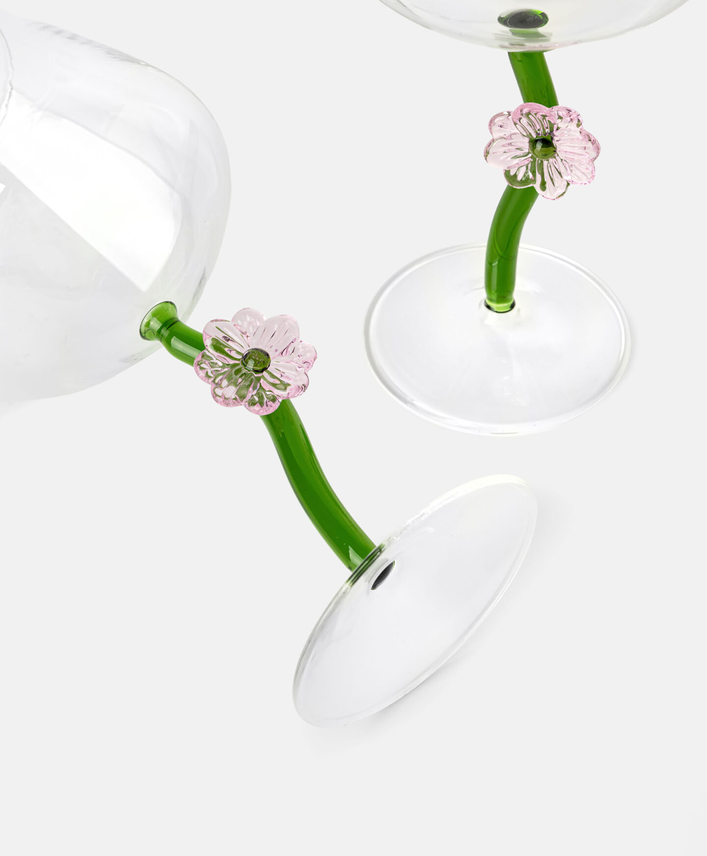 Sada sklenic 2 ks s 3D kvítkem je ideální pro ty, kteří hledají jedinečné nádobí. Ideální na speciální příležitosti i každodenní použití. Nepravidelná zelená stopka ozdobená růžovým květem upoutá pozornost a potěší vaše hosty. Ideální na pití vody, koktejlů nebo smoothies.