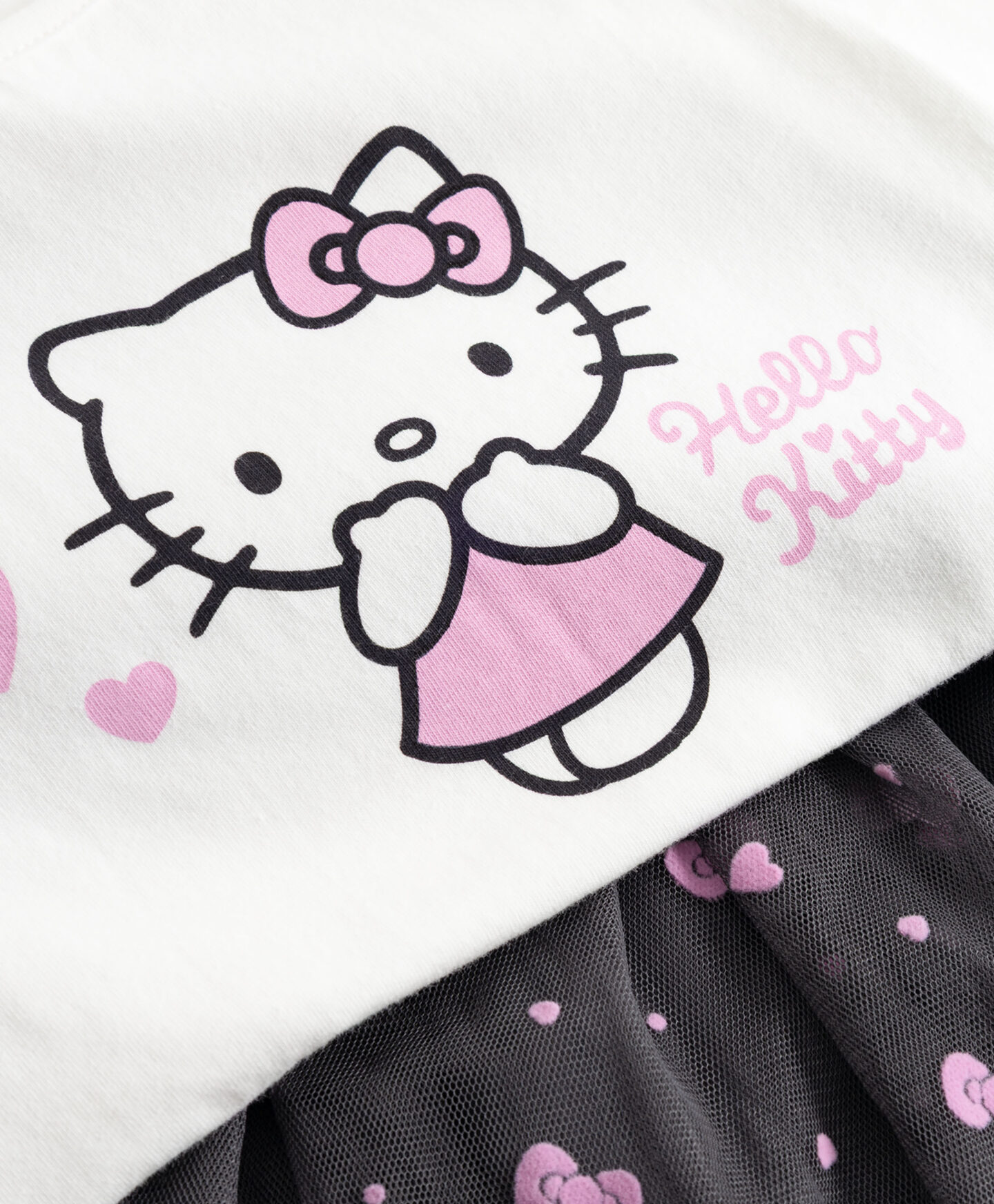 Šaty s dlouhým rukávem Hello Kitty jsou perfektním outfitem vhodným do školky i na speciální příležitosti. Rozšířená tylová sukně a kouzelný potisk na přední straně způsobí, že se každá malá fanynka Hello Kitty bude cítit jako princezna. Vrchní část je vyrobená z elastického materiálu s vysokým podílem bavlny a zajišťuje, že se vaše dítě může volně pohybovat během aktivit a hry.