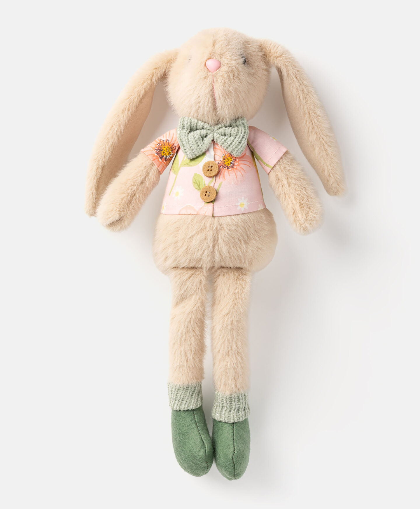 Sedící dekorativní zajíček dodá útulný nádech každému aranžmá. Funguje skvěle jako součást velikonoční výzdoby stolu, ale vypadá krásně i samostatně – na poličce, kuchyňské lince nebo nad krbem. Jeho jarní design přináší lehkost a barvu do vašeho každodenního domova.