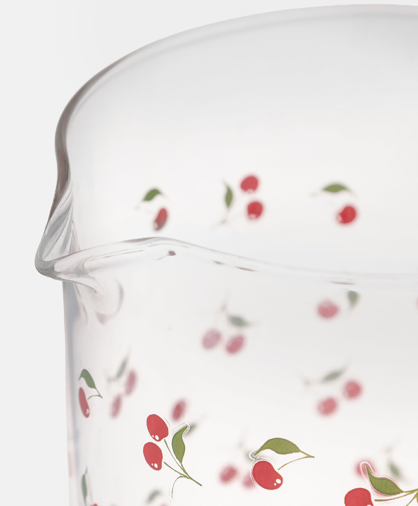 Tento skleněný džbánek s třešňovým vzorem přinese léto do vaší kuchyně! Borosilikátové sklo je odolné vůči vysokým i nízkým teplotám a snadno se udržuje v čistotě. V džbánu můžete podávat osvěžující limonádu, ledový čaj nebo klasickou mátovou vodu s vědomím, že nápoj bude vypadat velmi lákavě. Objem 1,7 l je ideální pro společné stolování.