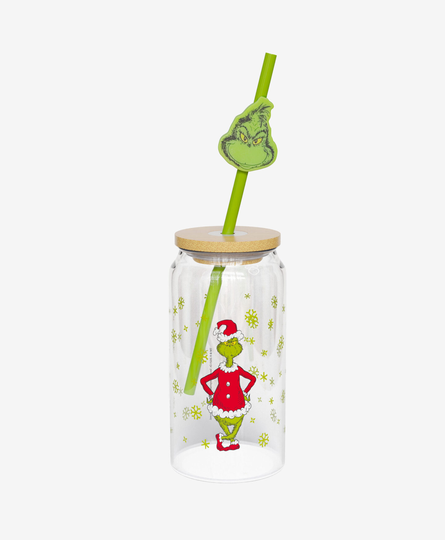 Sklenice s potiskem Grinche a brčkem promění obyčejné nápoje v zábavné vánoční dobrodružství. Zdobené ilustracemi hrdiny ve vánočním oblečení přinášejí do každodenních okamžiků nádech humoru. Praktická brčka zajišťuje pohodlné a bezpečné pití a pevná konstrukce zaručuje odolnost.