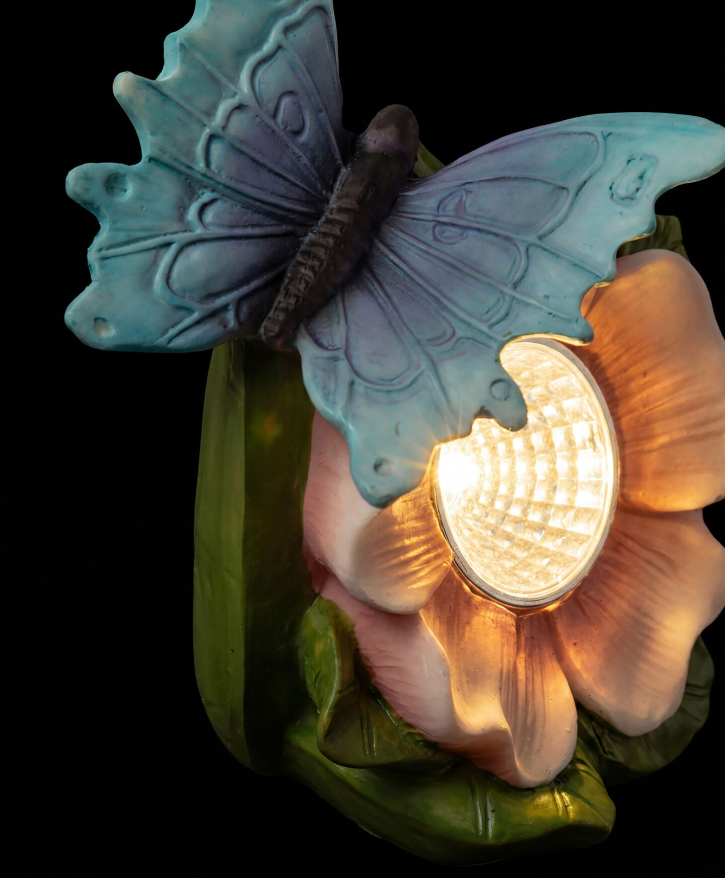Solární lampa s květinou a motýlem je jedinečnou zahradní dekorací. Je napájena solární energií, díky vestavěnému solárnímu panelu funguje bez kabelů a baterií. Jarní design s jemným květem a motýlem upoutá pozornost a jemné LED světlo vytvoří magickou atmosféru v každé zahradě, na balkoně nebo terase. Lampa se automaticky zapne za soumraku a vypne za úsvitu, čímž poskytuje bezúdržbové osvětlení po celou noc. V nabídce jsou dostupné i jiné vzory.