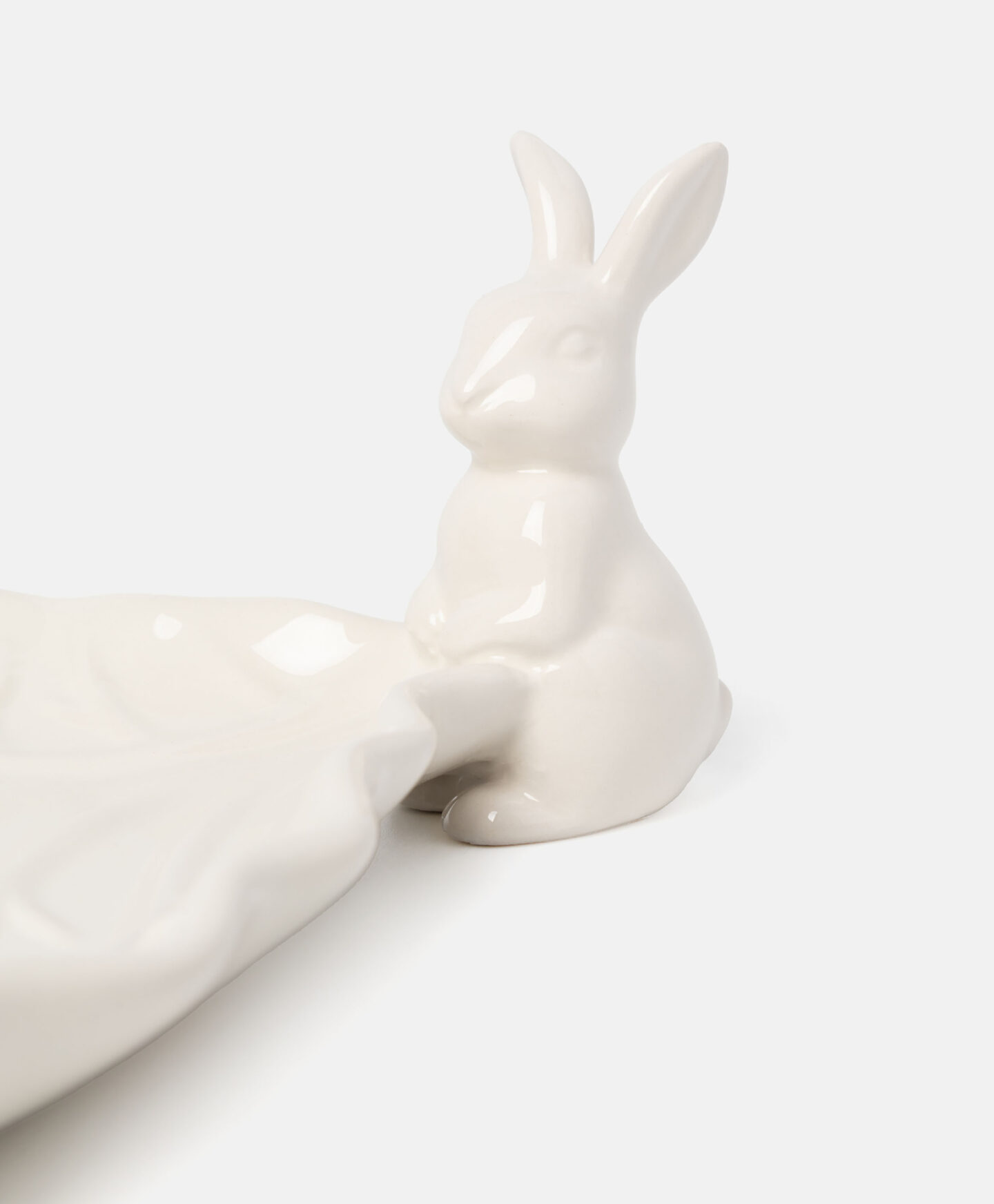 Talíř ve tvaru zelného listu s 3D zajíčkem je jedinečným kusem nádobí. Je vyrobený z dolomitu odolného vůči poškrábání a snadno se udržuje v čistotě. Ideální pro servírování slaných i sladkých pochoutek, ale může být i samostatnou dekorací stolu. V kolekci naleznete další nádobí s podobným designem.