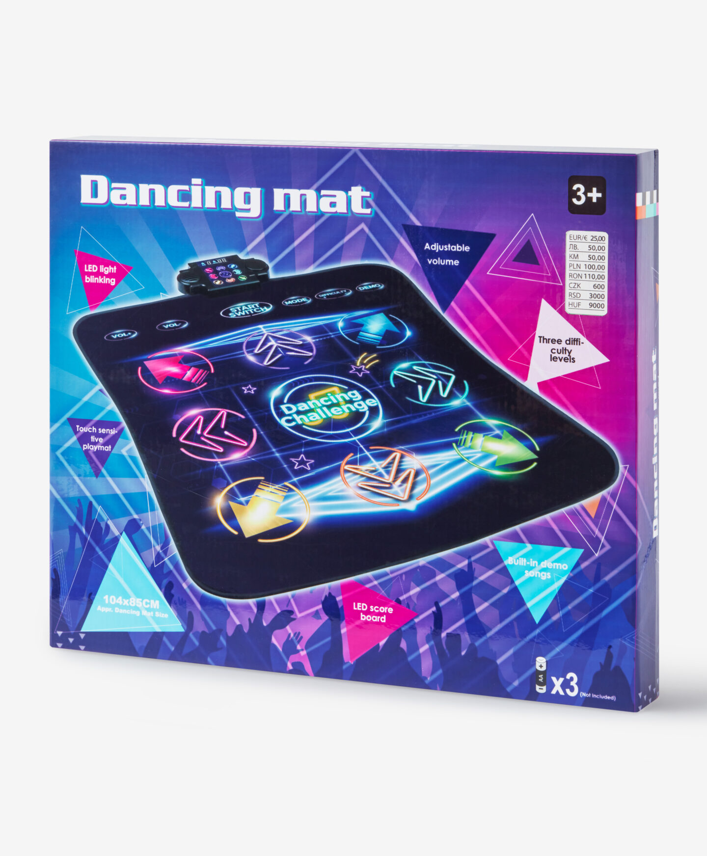 Taneční podložka je interaktivní hračka, která kombinuje pohyb s hudbou. Hráči musí ladit světla a rytmus, což jim poskytuje velkou dávku fyzické aktivity. Je to směs tance, zábavy a reflexního cvičení; ideální pro společně strávené chvíle. K dispozici jsou různé skladby a nastavitelné úrovně hlasitosti.