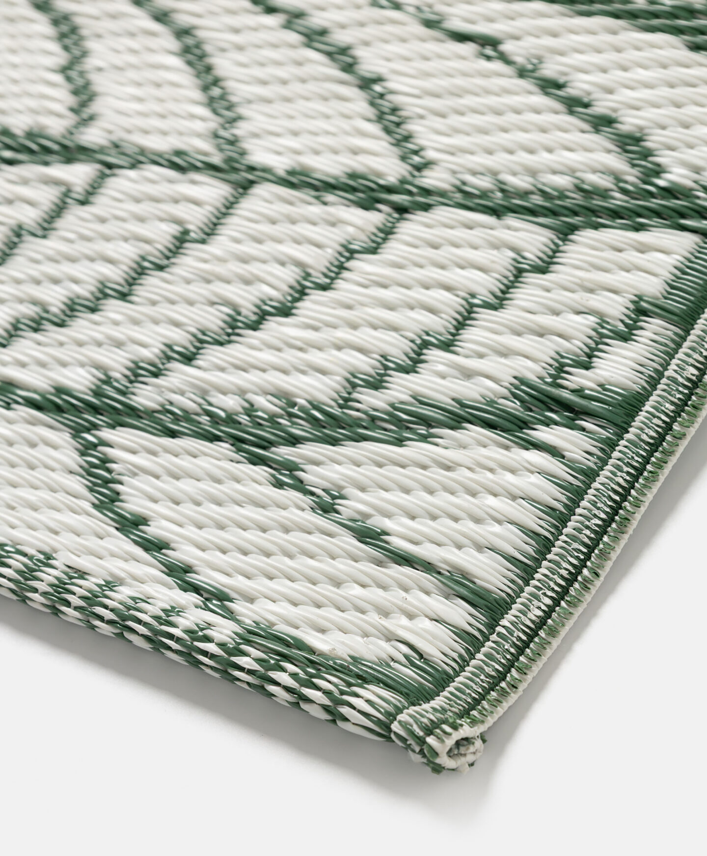 Venkovní koberec se vzorem listů bude ozdobou vašeho balkonu nebo terasy. Krásný vzor listů v přírodních barvách dokonale zapadá do estetiky zahrady. Koberec je odolný vůči povětrnostním vlivům. Koberec se také snadno čistí. Je to perfektní dárek pro každého milovníka přírody, který chce mít hezkou a funkční dekoraci svého vnějšího prostoru.