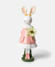 Tato zaječice v růžových polyresinových šatech bude vypadat skvěle jako dekorativní prvek v dětském pokoji, krásný doplněk na poličku v obýváku nebo jako další doplněk do vaší sbírky zvířecích figurek. Vyrobeno s důrazem na detail, vyniká elegantním designem a jarním charakterem.
