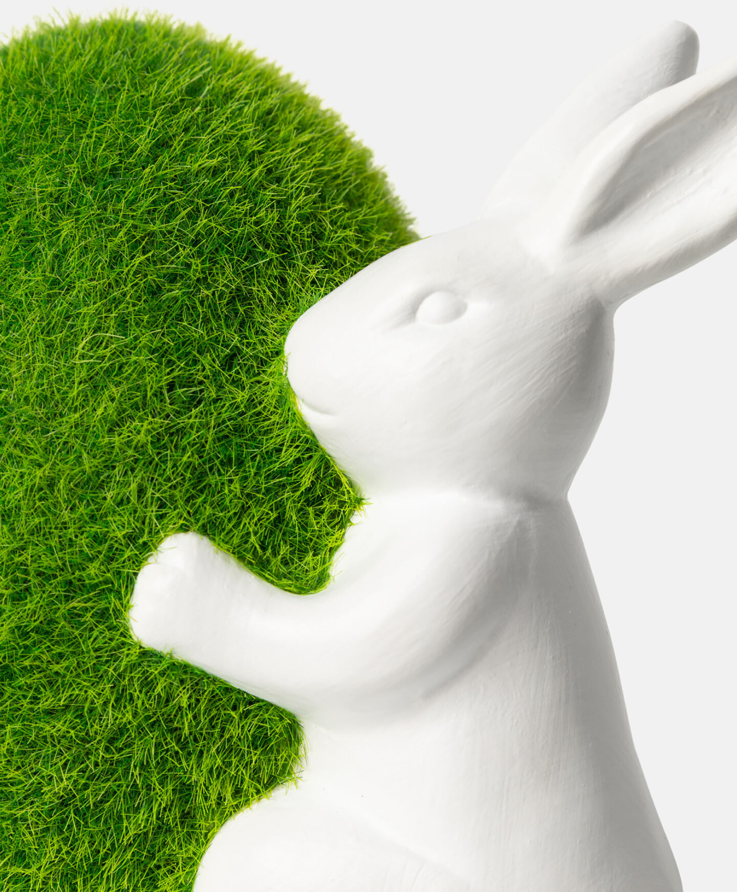 Zajíček s chlupatým vajíčkem je elegantní dekorace, která se hodí do každého prostoru. Pomůže vám ozdobit váš velikonoční stůl, kuchyňskou linku nebo příborník v obýváku. Zlatá barva v interiéru krásně vynikne, zatímco chlupaté vajíčko – s měkkou texturou podobnou trávě – dodává svěží jarní charakter.