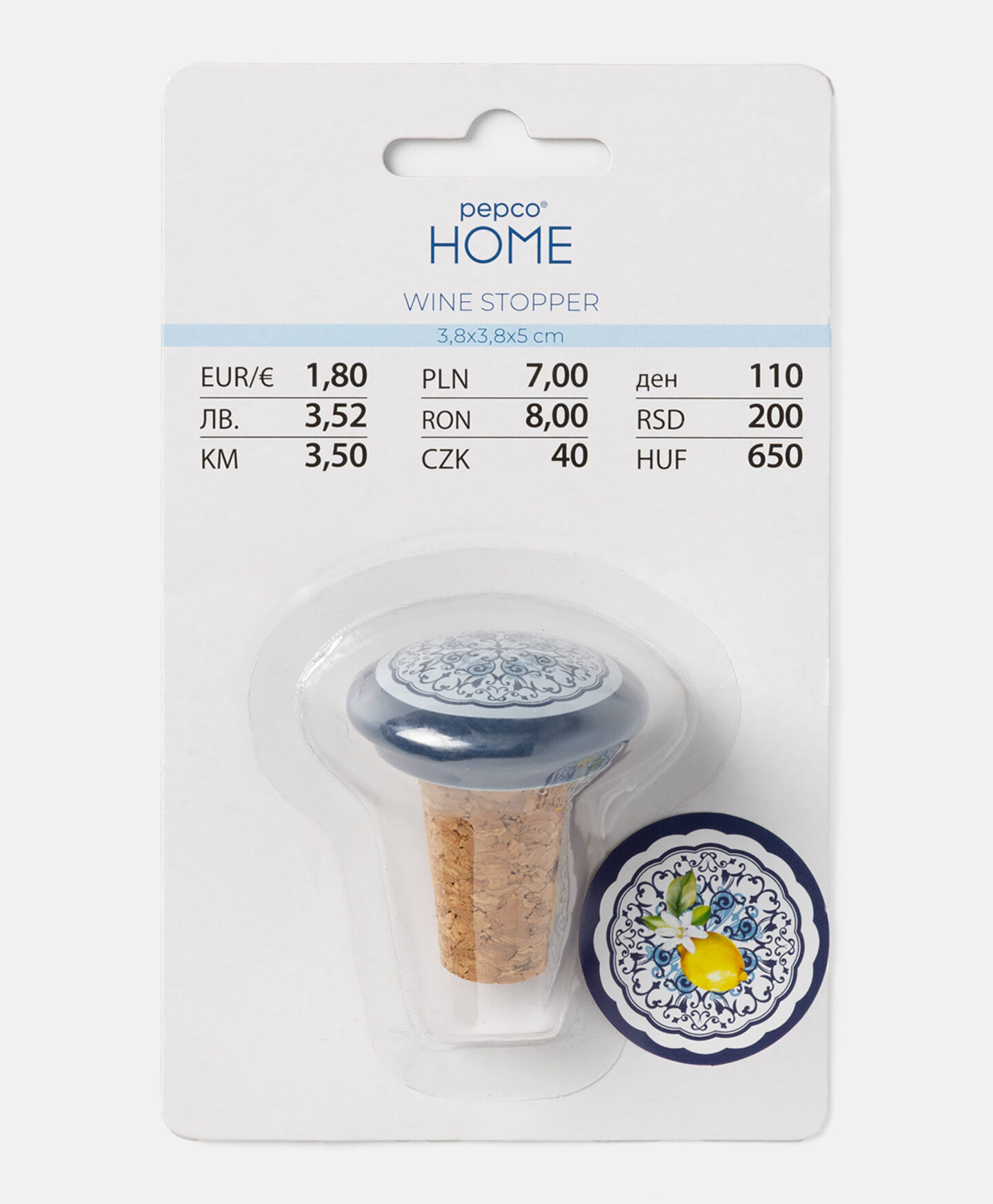 Zátka na láhev s dekorativním vzorem je užitečným doplňkem v každé kuchyni. Umožňuje vám pevně uzavřít láhve, jejichž obsah se nespotřebuje ihned. Kombinace přírodního korku a odolné kameniny činí zátku odolnou, snadno se čistí a dokonale chrání obsah láhve před rozlitím, ztrátou chuti nebo oxidací.