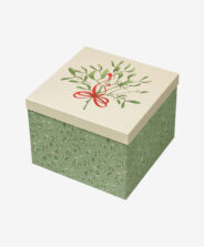 Zelená papírová krabička je ozdobená dekorativním potiskem s vánoční atmosférou. Je praktická a estetická, díky čemuž je ideální na balení překvapení pro blízké. Dárky v takovém balení vypadají výjimečně a potěší už od prvního pohledu.