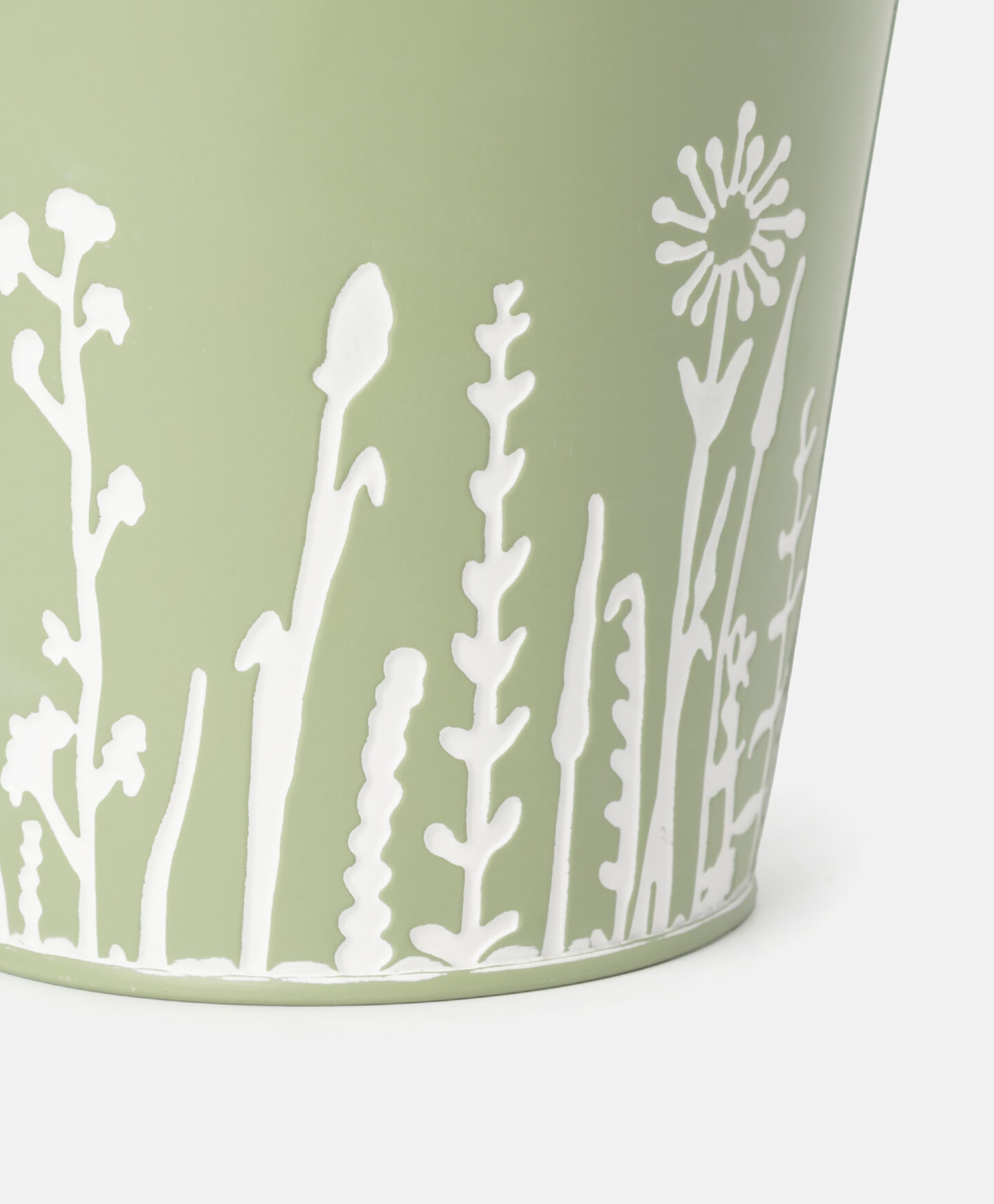 Zelený kovový květináč se vzorem je lehký, odolný a odolný vůči povětrnostním podmínkám. Jarní vzor zdobící jeho stěny přinese na vaši terasu nebo balkon závan svěžesti. Bude se skvěle hodit pro pěstování malých rostlin, zeleniny nebo květin. Květináč se snadno čistí a udržuje, stačí jej otřít vlhkým hadříkem, aby si zachoval lesk a krásný vzhled. V nabídce jsou dostupné i jiné vzory.