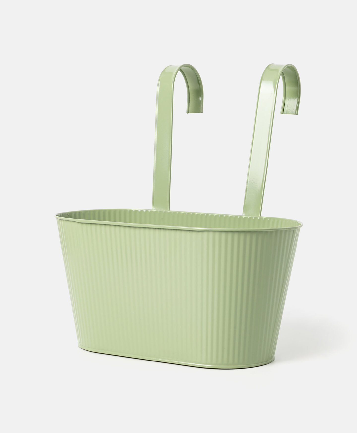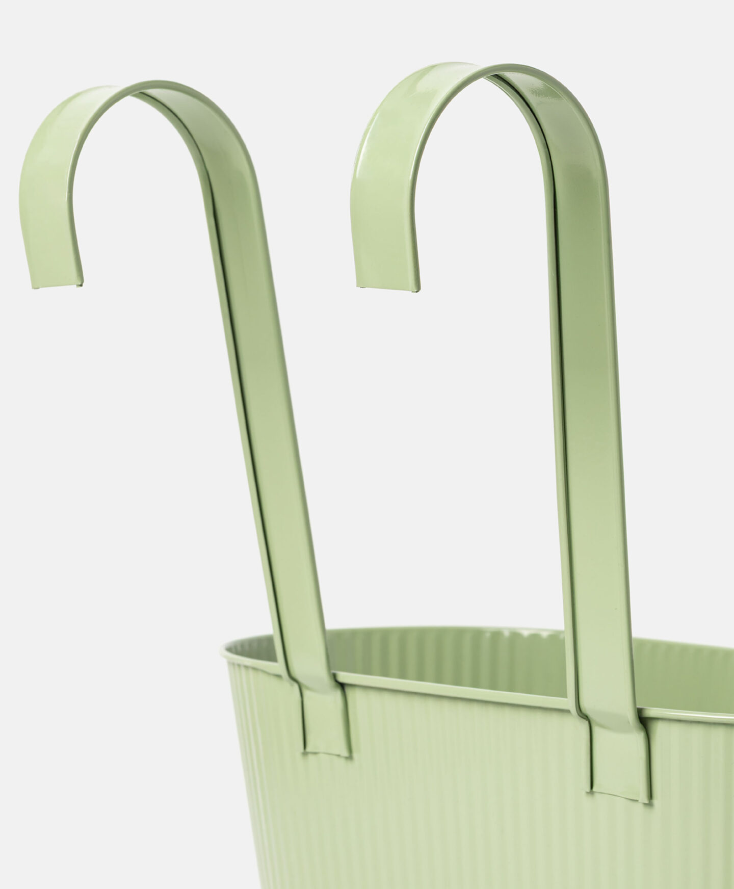 Zelený oválný závěsný obal na květináč s žebrovanými stěnami zaujme svým jarním designem. Praktické závěsné háky umožňují umístit jej na balkonové zábradlí nebo dřevěnou stěnu, čímž se maximalizuje využití dostupného prostoru. V nabídce jsou dostupné i jiné vzory.