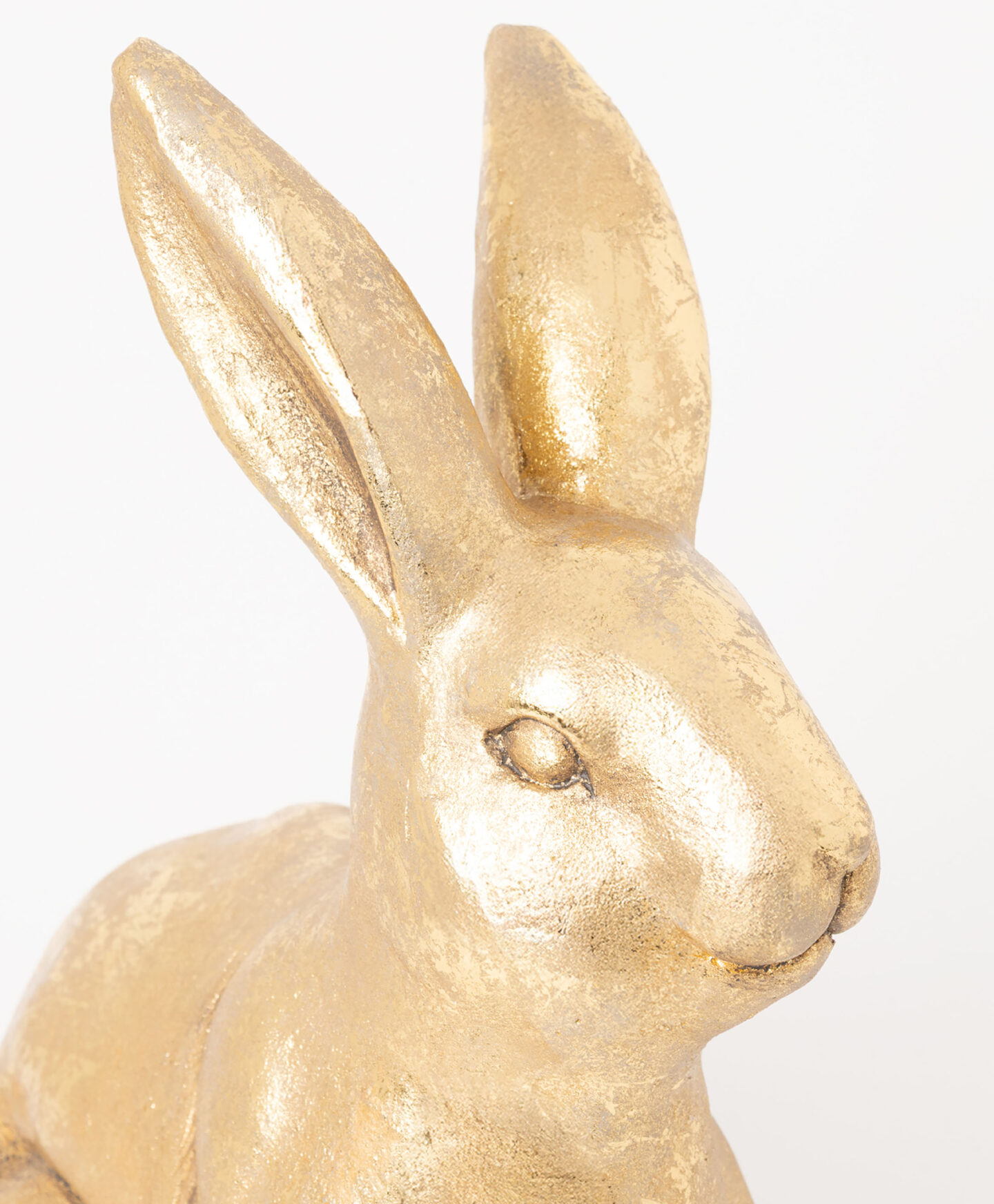 Zlatý zajíček ve velikosti L je působivá dekorace, která upoutá pozornost. Jeho zlatá barva upoutá pozornost a matný povrch působí mimořádně elegantně. Funguje perfektně jako dekorace do interiéru i exteriéru. Zajíček je také vhodným dárkem pro milovníky krásných věcí.