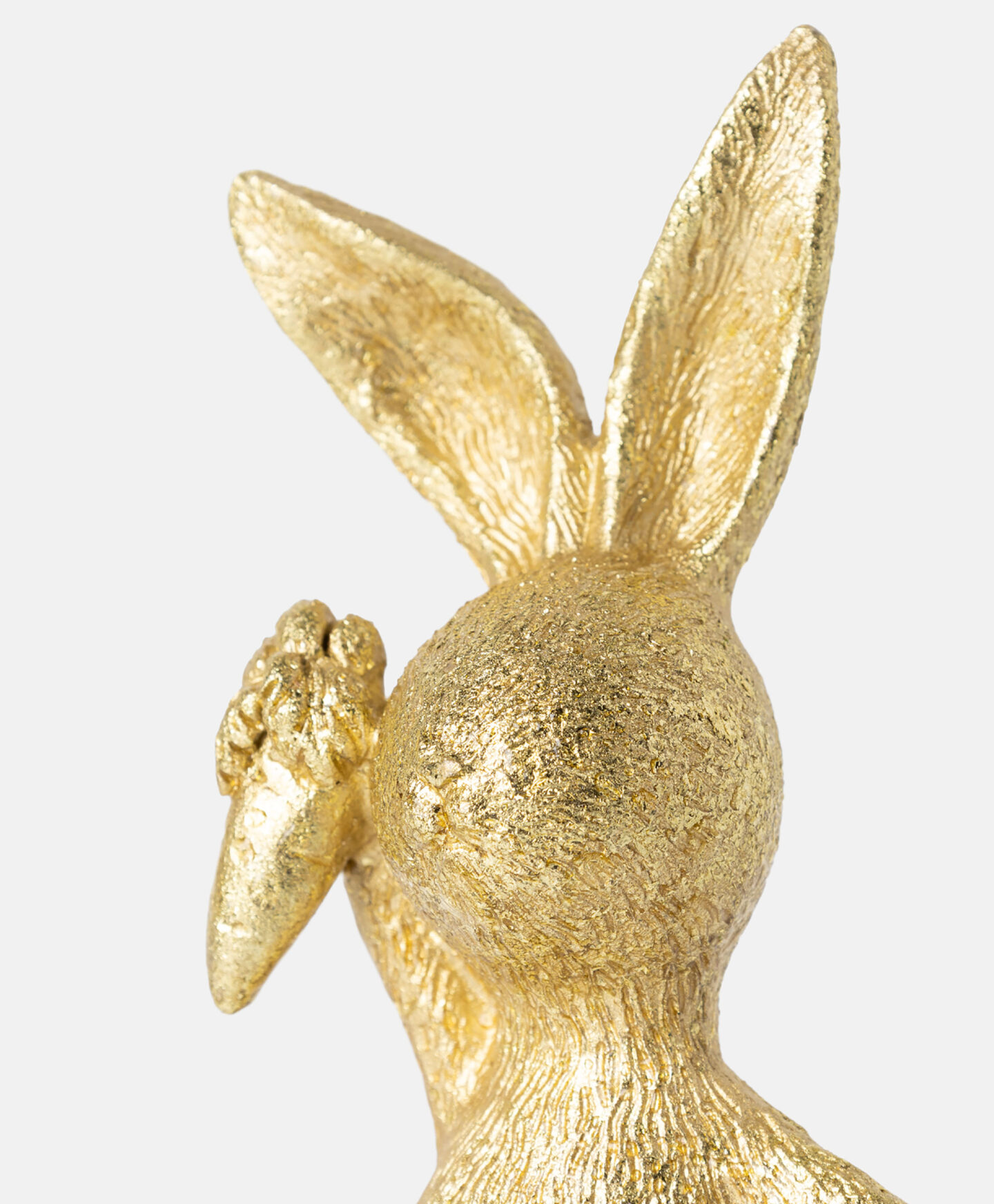 Zlatý zajíček s mrkví z polyresinu upoutá pozornost svojí decentní elegancí. Polyresin je lehký a odolný materiál, který odolává plynutí času a povětrnostním podmínkám, čímž zajišťuje dlouhotrvající kvalitu figurky. Zajíček je ideální pro ty, kteří hledají jemné a vkusné akcenty. Různé designy na výběr.